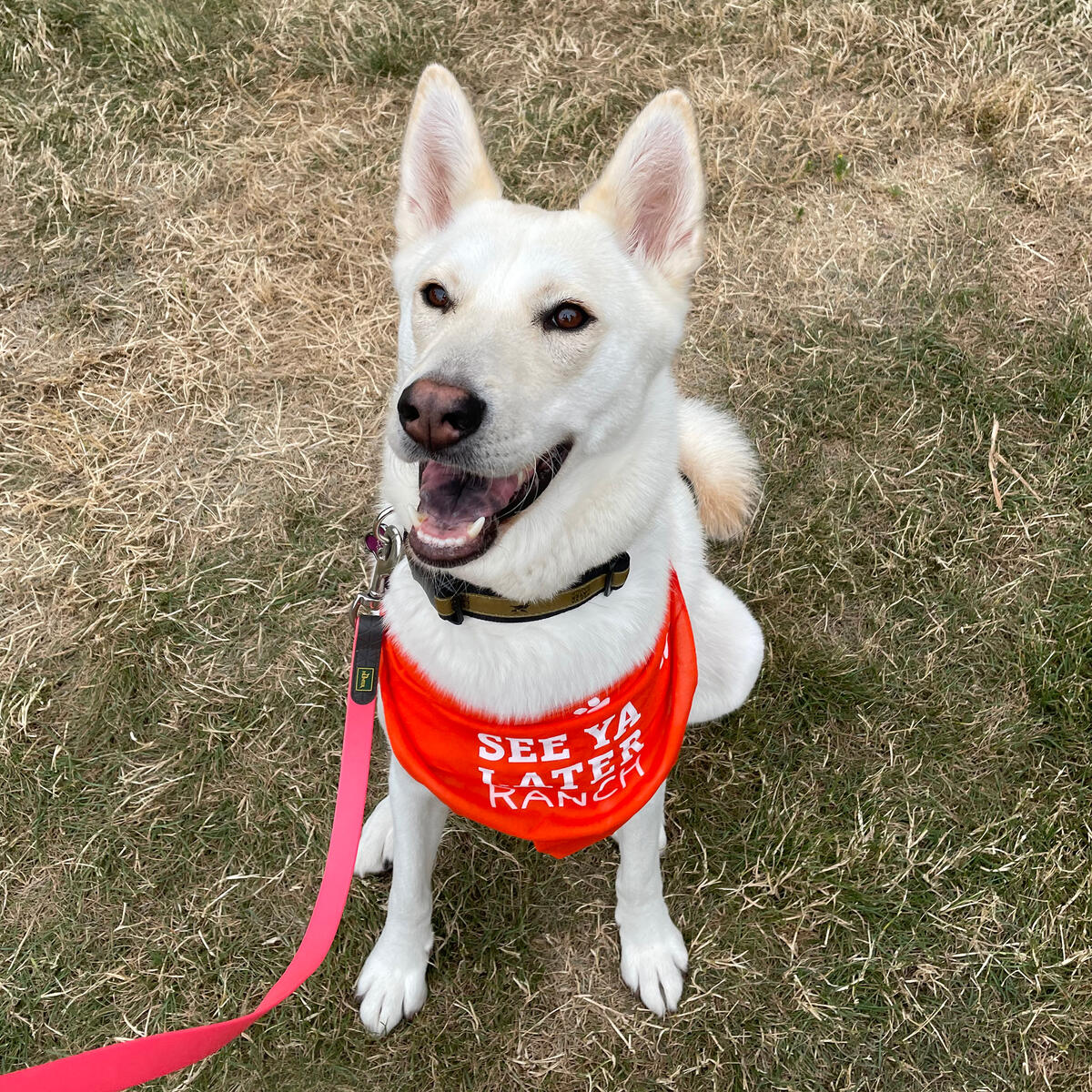 "She's our rescue and didn't have any training when we adopted her at 9 months old. Nina was completely overstimulated outdoors. We crossed paths with Rae-Dawn, and through positive methods she taught us how to focus attention when on-leash and work towards recall with our high prey driven dog. Nina now lives her best life indoors and outdoors."