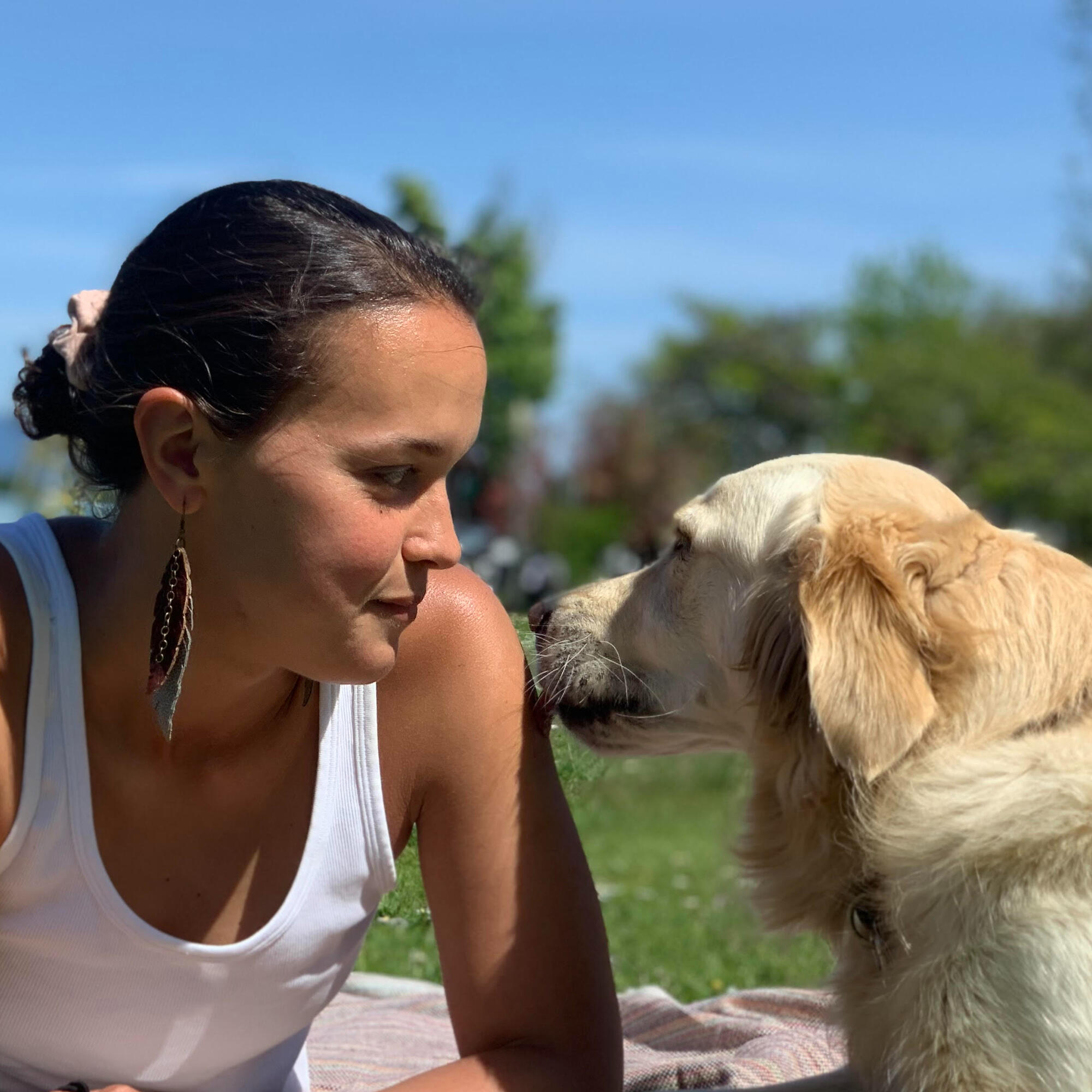 "She's our rescue and didn't have any training when we adopted her at 9 months old. Nina was completely overstimulated outdoors. We crossed paths with Rae-Dawn, and through positive methods she taught us how to focus attention when on-leash and work towards recall with our high prey driven dog. Nina now lives her best life indoors and outdoors."